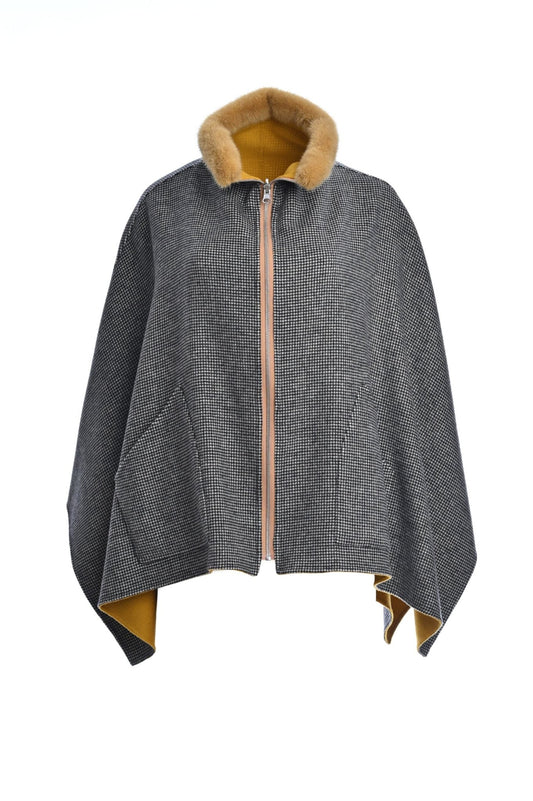 Cashmere/Wool Reversible Cape with Mink on Collar