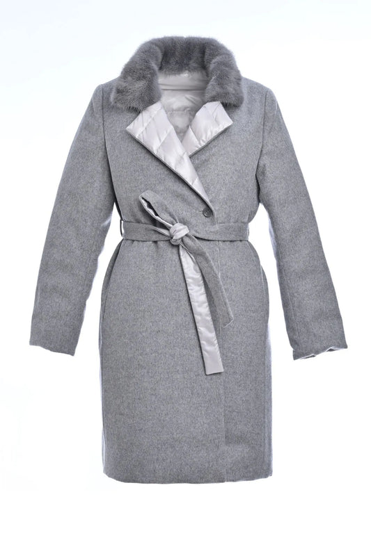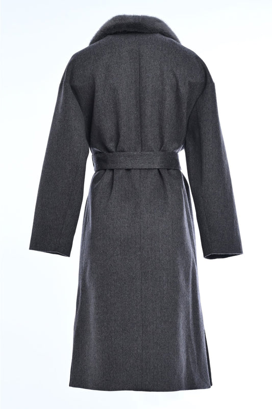 Pure Cashmere Coat with Detachable Mink Collar